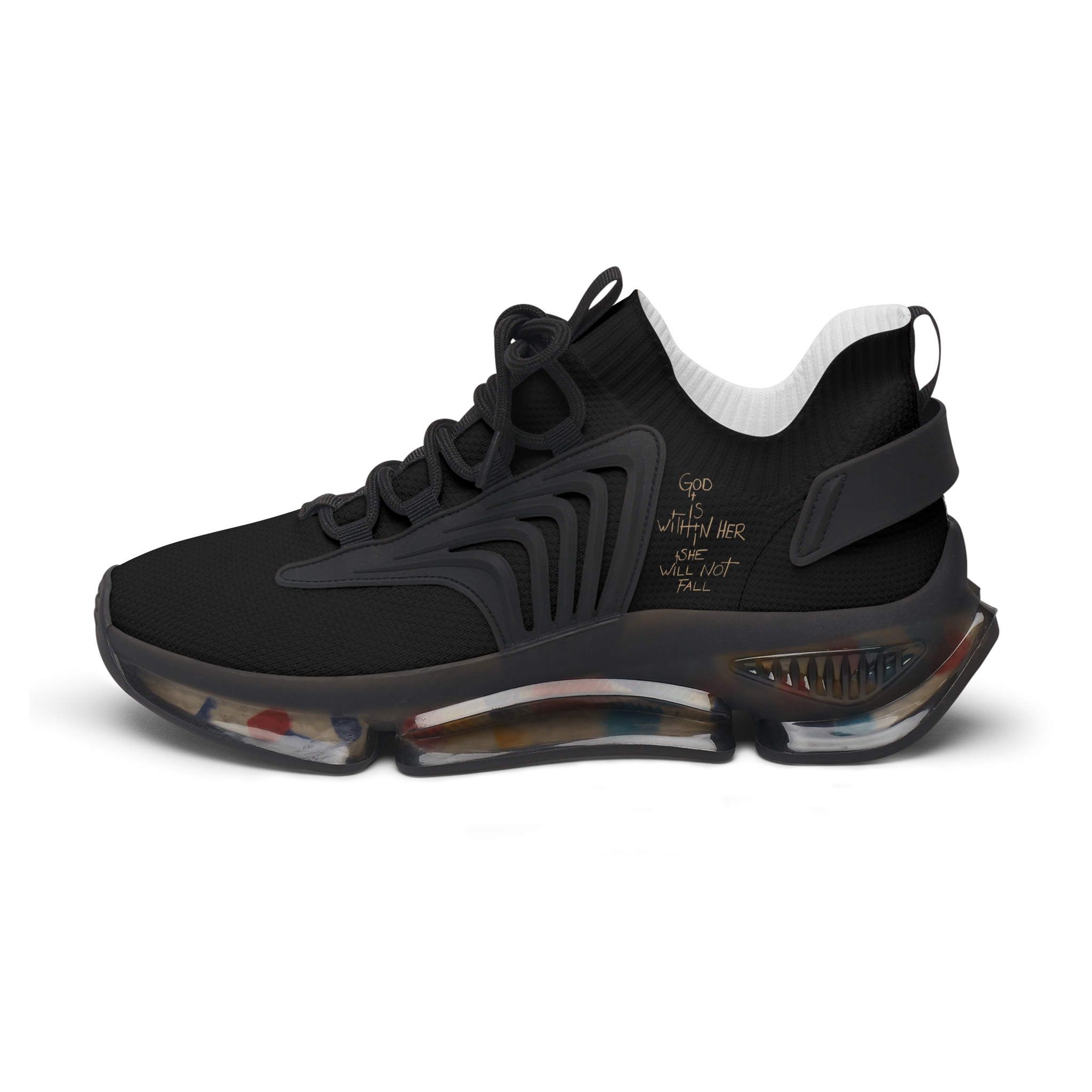 Print covers the mesh knit polyester top of the sneakers